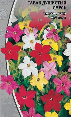 СМЕСЬ Чарующий аромат Очаровательная смесь обильно цветущих однолетников с изящными душистыми цветками разнообразных расцветок, высотой 60–70 см. Цветки звездчато-трубчатые, длиной 7,5 см, диаметром до 5 см, собраны в крупные, рыхлые, метельчатые соцветия. Раскрываются ночью и тогда наиболее ароматные. Цветет обильно с июля до сентября. Предпочитает солнечные места. Используют для клумб, рабаток, балконов, газонов, в местах отдыха.